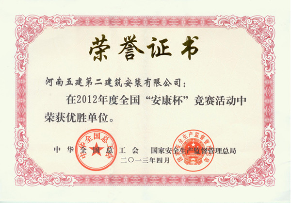全國(guó)“安康杯”獎(jiǎng)狀