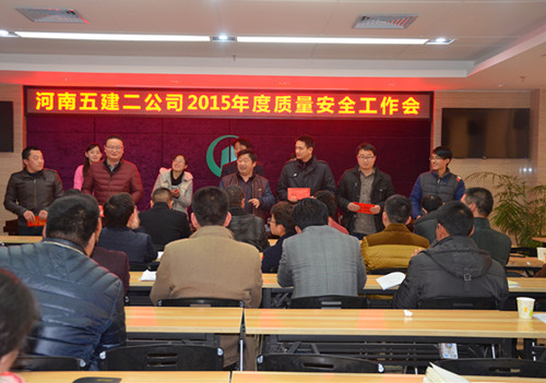 會議首先由生產(chǎn)副總吳建功作2015年度公司質(zhì)量安全工作報告,對2014年的工作進行回顧總結并詳細部署了2015年的工作,報告中吳總特別提到去年工作的重點是創(chuàng)衛(wèi)和兩年質(zhì)量行動治理,重中之重是兩年質(zhì)量行動治理,同時要求各項目部在本年度內(nèi)嚴格按照建設部兩年質(zhì)量治理行動,結合公司對各項目部下達的停檢點、任務目標等保質(zhì)保量完成。