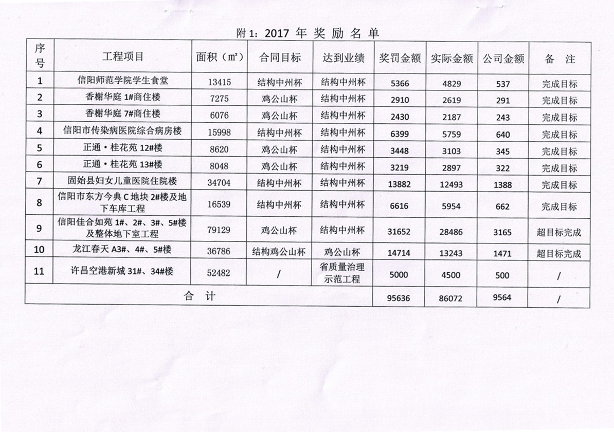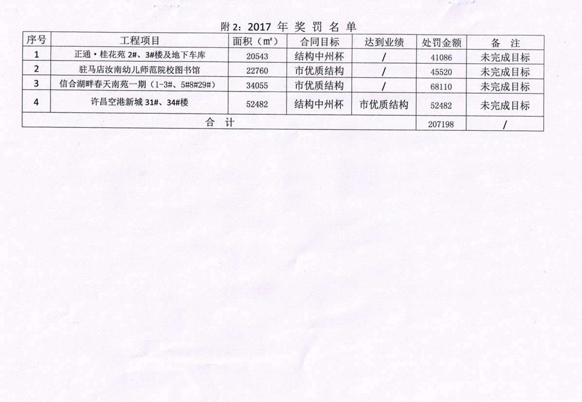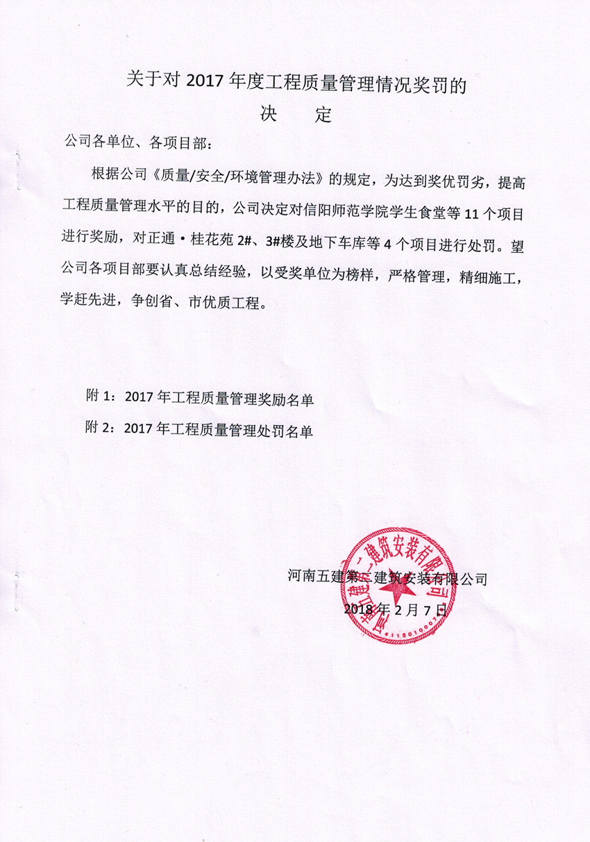 關(guān)于對(duì)2017年度工程質(zhì)量管理情況獎(jiǎng)罰的決定