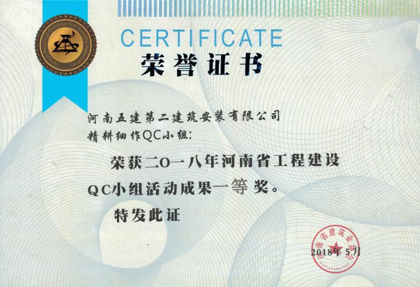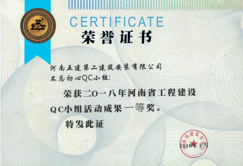 近日,河南省建筑業(yè)協(xié)會2018年工程建設優(yōu)秀QC小組活動成果交流會在三門峽市召開,在此次的發(fā)布活動中,公司再創(chuàng)佳績,推薦5個QC成果,其中3個獲得了省級一等獎、2個獲得了省級二等獎。