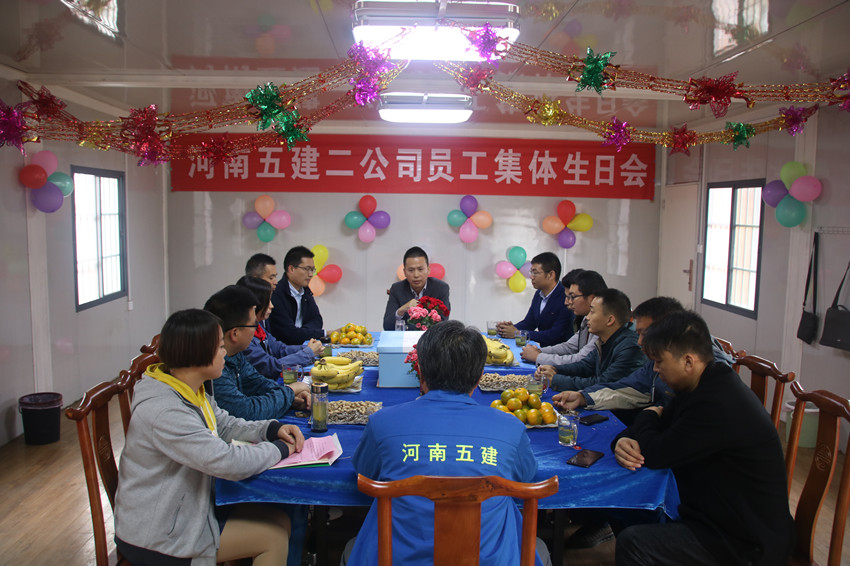 舉辦集體生日會能夠促進公司團隊凝聚力,增加員工的歸屬感,推動公司企業(yè)文化建設(shè)。未來,公司還將積極開展形式多樣、內(nèi)涵廣泛的集體活動,進一步增進員工之間的感情,體現(xiàn)企業(yè)的人文關(guān)懷,努力讓每一位員工都能感受到五建大家庭的溫暖,從而鼓勵大家努力拼搏,齊心協(xié)力同企業(yè)一起成長。