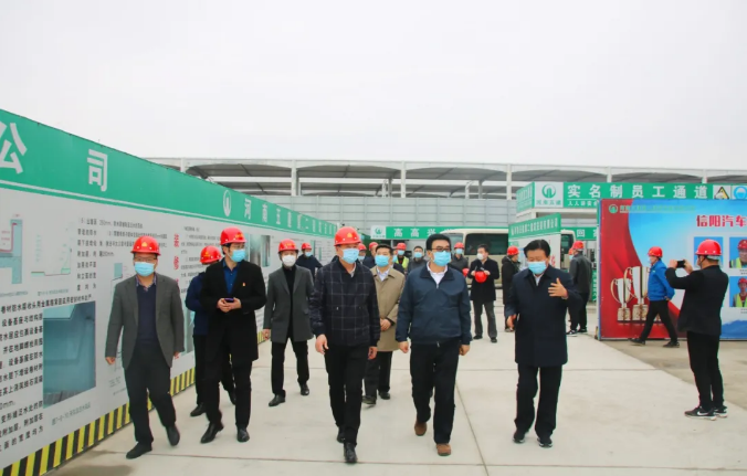 3月30日下午,公司在建項目信陽長途汽車東站及配套設施用房項目再次迎來尊貴的客人,河南省人民政府副省長何金平帶領省住建廳、商務廳等部門主要負責同志蒞臨項目現(xiàn)場調研疫情防控及復工復產情況;信陽市副市長李正軍、住建局局長張立英、商務局局長郭珂、市場監(jiān)督管理局局長孫云宏等領導陪同調研,高新區(qū)黨委書記、管委會主任熊開程、副主任陳偉、信運集團董事長阮中杰、公司黨委書記、董事長吳萬仁參加了調研活動。