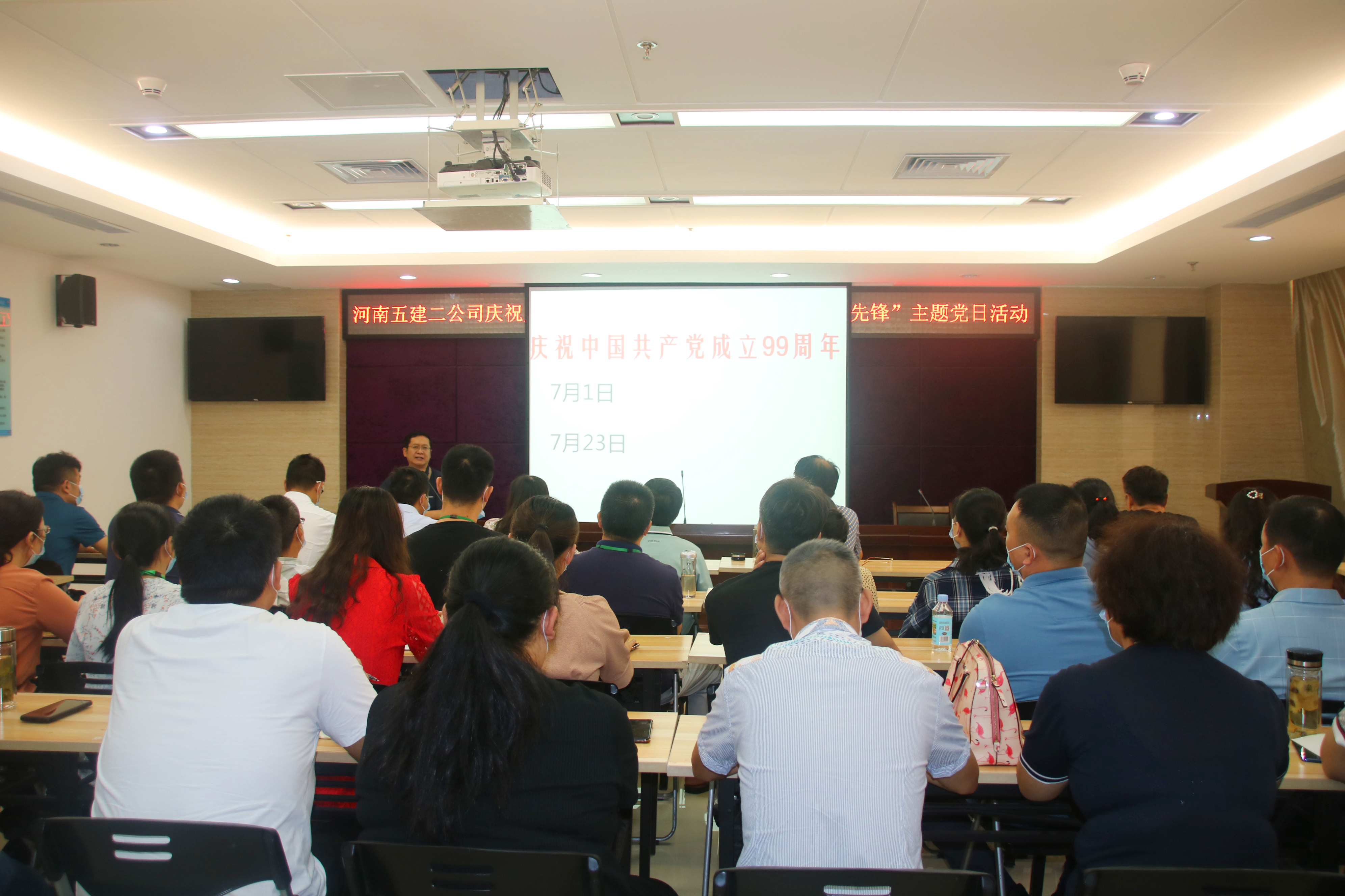 2020年7月1日,為慶祝中國共產(chǎn)黨建黨99周年,公司全體黨員在大會議室舉行了“牢記初心使命 爭當出彩先鋒”主題黨日活動,公司特別邀請了中共信陽市委黨校黨史黨建教研室主任、副教授雷雨為大家授課,會議由公司經(jīng)營副總余雷主持。